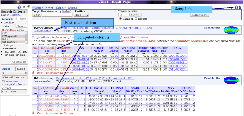 The Samp link in the right top of the page is an alternative output to send the current data into a Samp compatible application (for instance Aladin).